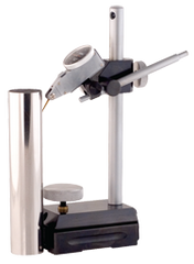 •Revolutionary design •Large range fine adjustment •Can be locked in any position •Base: 3" wide x 3.54" long •Holds test indicators or dial gages with dovetail holders and special adapters •Large capacity positioning range •Large handwheel for fine adjustment •Stainless steel adjustment •Packed in deluxe wood case •Weight 4.8 lbs (2,2 kg)