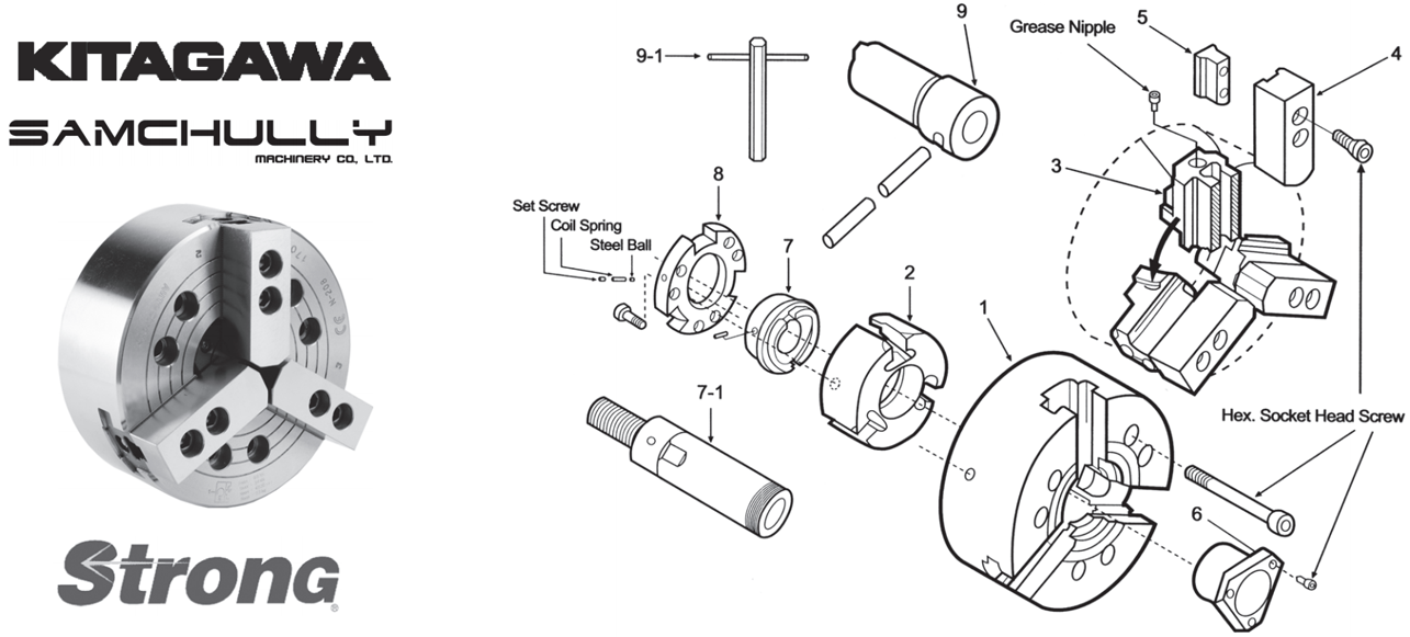 STRONG® replacement parts and accessories are interchangeable with Samchully®, Kitagawa® B200 series and Strong® Chucks.