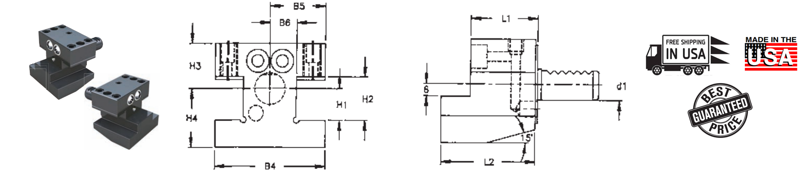 | d1 | B4 | B5 | B6 | H1 Inch | H1 Metric | H2 | H3 | H4 | L1 | L2 | Part Number | Price |
