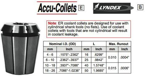- Lyndex coolant style ER collets feature a unique patented design which staggers the slots to prevent coolant from reaching the face of the collet.