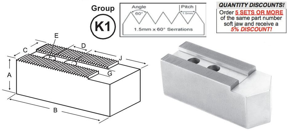 SOFT JAWS POINTED - 1.5 mm x 60° Serrations - Chuck Size 4 - 8