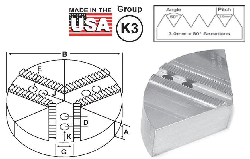 Round Jaw Material: ALUMINUM-6061-T6 Bar Stock, CAST IRON-Gray, STEEL-1018. 18" & Larger- Aluminum Casting T6