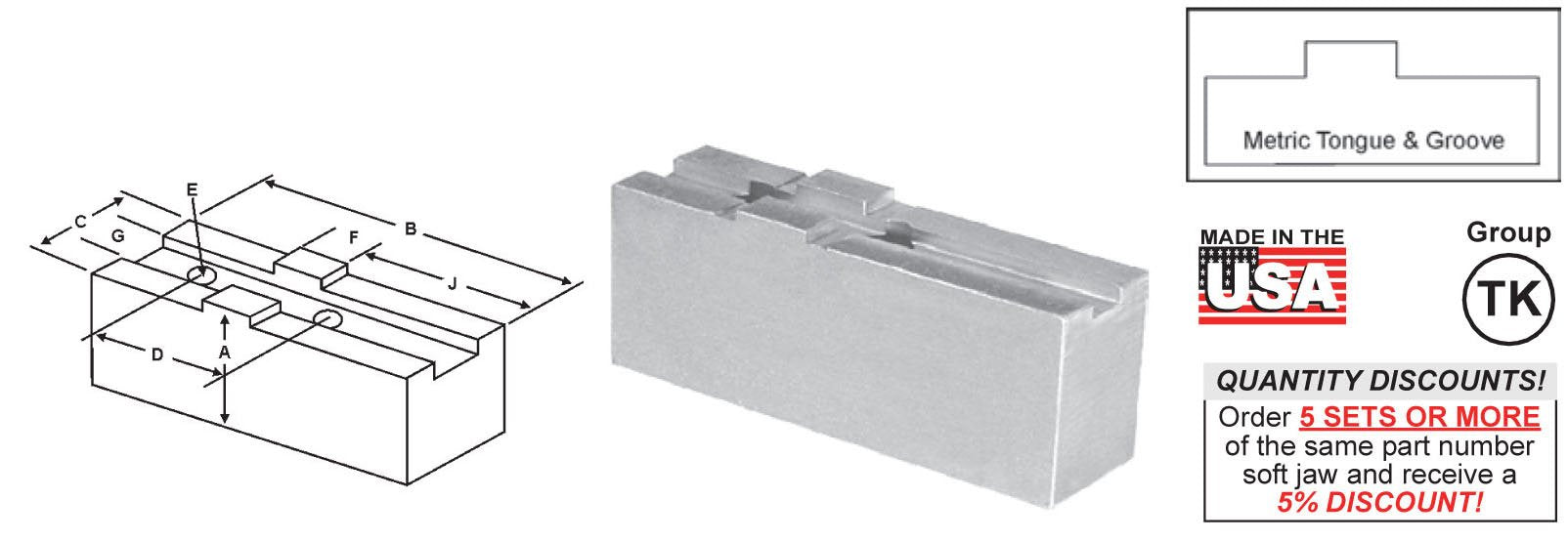 SOFT JAWS POINTED - METRIC TONGUE & GROOVE **FOR USE ON: SMW Autoblok KNCS, SMW Systems, Schunk, Rohm Chucks Using GBK Master Base Jaws