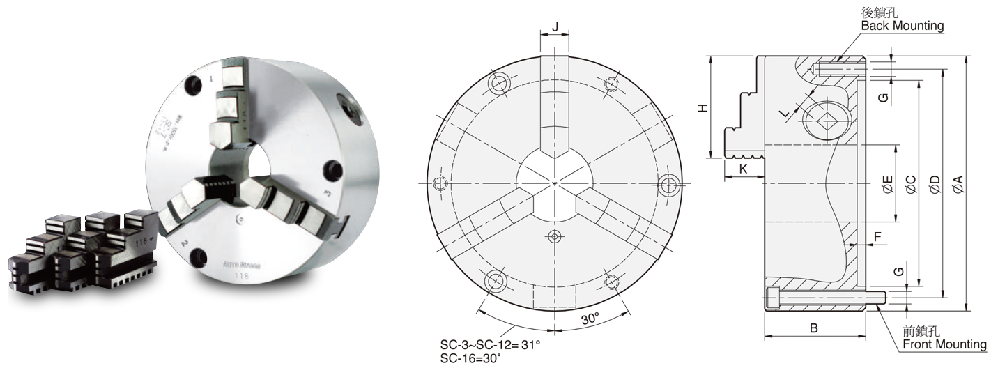 | 310 | 96 | 260 | 285 | 105 | 7 | 3-M12 / 3-M12×110 | 110 | 30 | 45.6 | 14 | 21.0 | 4200 | 1800 | 44.8 | 0.58 | Ø10-Ø300 / Ø86-Ø290 | SC-12 | Call or Email |